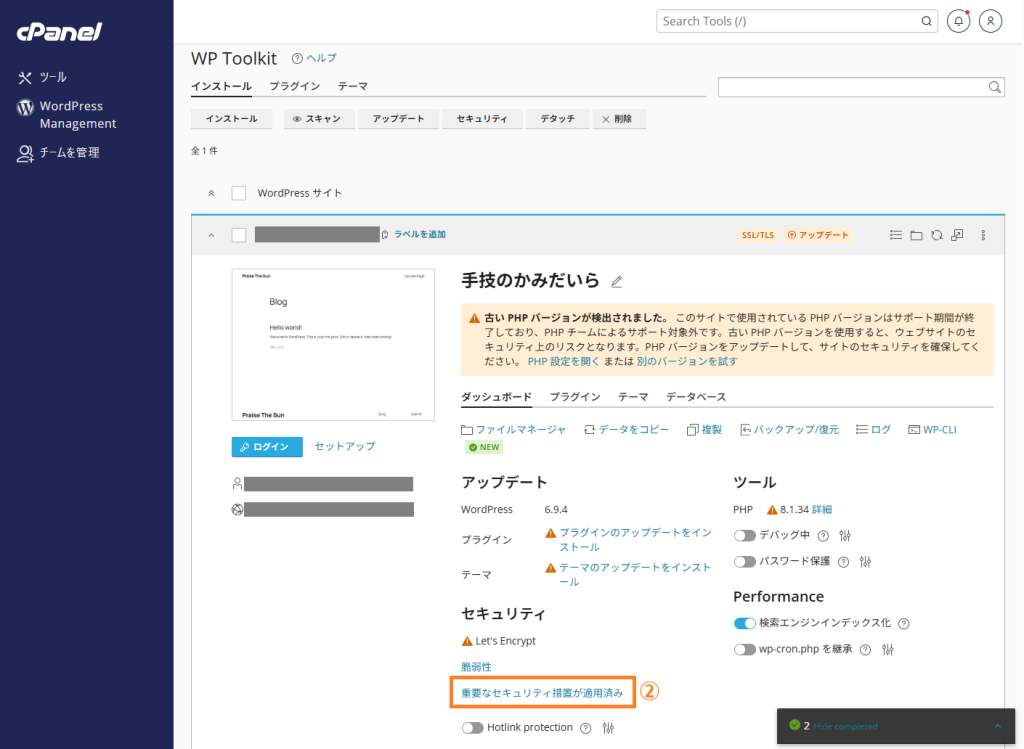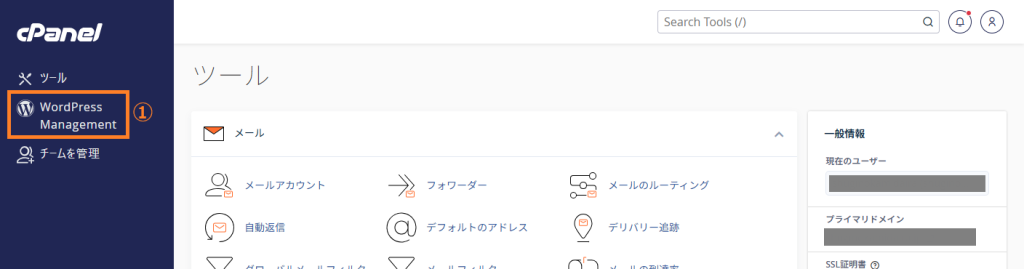cPanelにログインして、「WordPress Management」または「WordPress Toolkit」をクリックします。